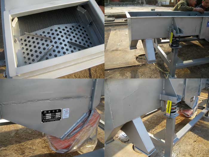 直線振動篩是種比較常見的振動篩分設備,利用振動電機激振作為振動動力來源,使物料在篩網上被拋起,同時向前作直線運動,物料從給料機均勻地進入篩分機的進料口,通過多層篩網產生數種規格的篩上物、篩下物、分別從各自的出口排出。
