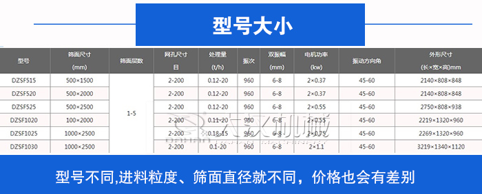 鋼纖維直線振動篩有DZSF-515、DZSF-520、DZSF-530、DZSF-1020、DZSF-1030、DZSF-1540等標準型號,因型號的不同他們的進料粒度、篩面直徑存在較大的差異,在生產中可以為用戶帶來的市場盈利也有所不同,進而廠家對于市場上型號不同的鋼纖維直線振動篩價格定位也有區別。