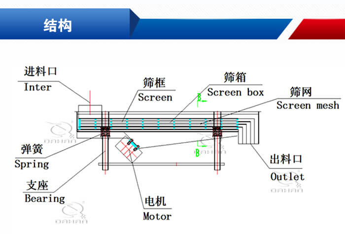 輕型直線振動篩采為雙振動電機驅動,當兩臺電機作同步、反向旋轉時,其偏心塊所產生的激振力在平行于電機軸線的方向相互抵消,在垂直于電機軸的方向疊為一合力,在激振力和物料自重力的共同作用下,使物料在篩面上被拋起向前作直線運動,從而達到篩分的目的。