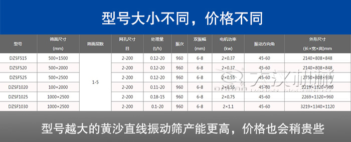 該設(shè)備型號(hào)有多種,每種型號(hào)的設(shè)備效率、產(chǎn)能、電機(jī)功率等各不樣,型號(hào)越大的黃沙直線振動(dòng)篩產(chǎn)能更高,價(jià)格也會(huì)稍貴些,不過給客戶帶來的經(jīng)濟(jì)利潤(rùn)將會(huì)更顯著。
